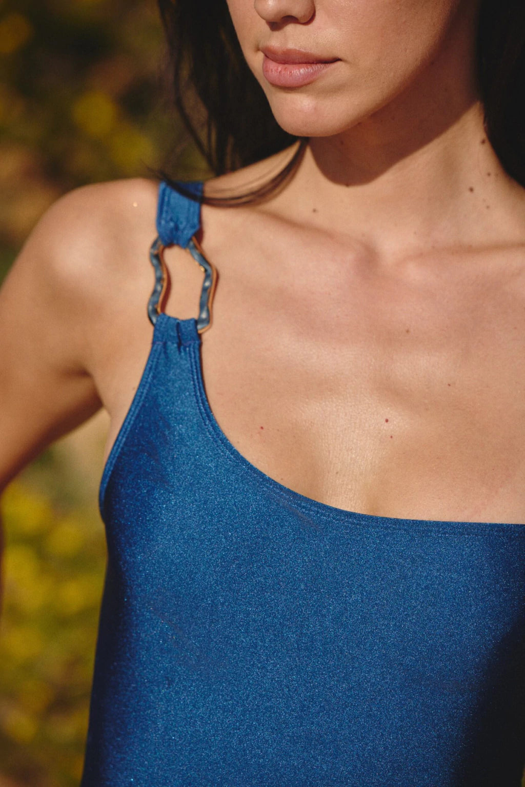 Bikini y body al mismo tiempo, con un hombro descubierto que estiliza y un avío que le pone toda la onda. Ideal para ir de la arena al after sin cambiarte.