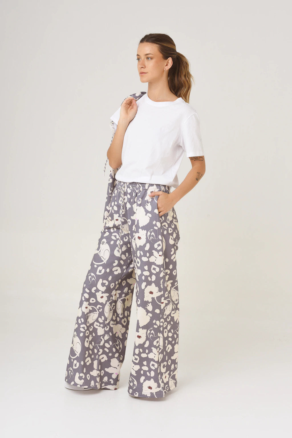 El pantalón Tijuana está confeccionado en rústico de algodón. El corte es palazzo,es un modelo bastante amplio. Viene con elástico en la cintura, cordón para ajustar si es necesario y tiene dos bolsillos laterales.
