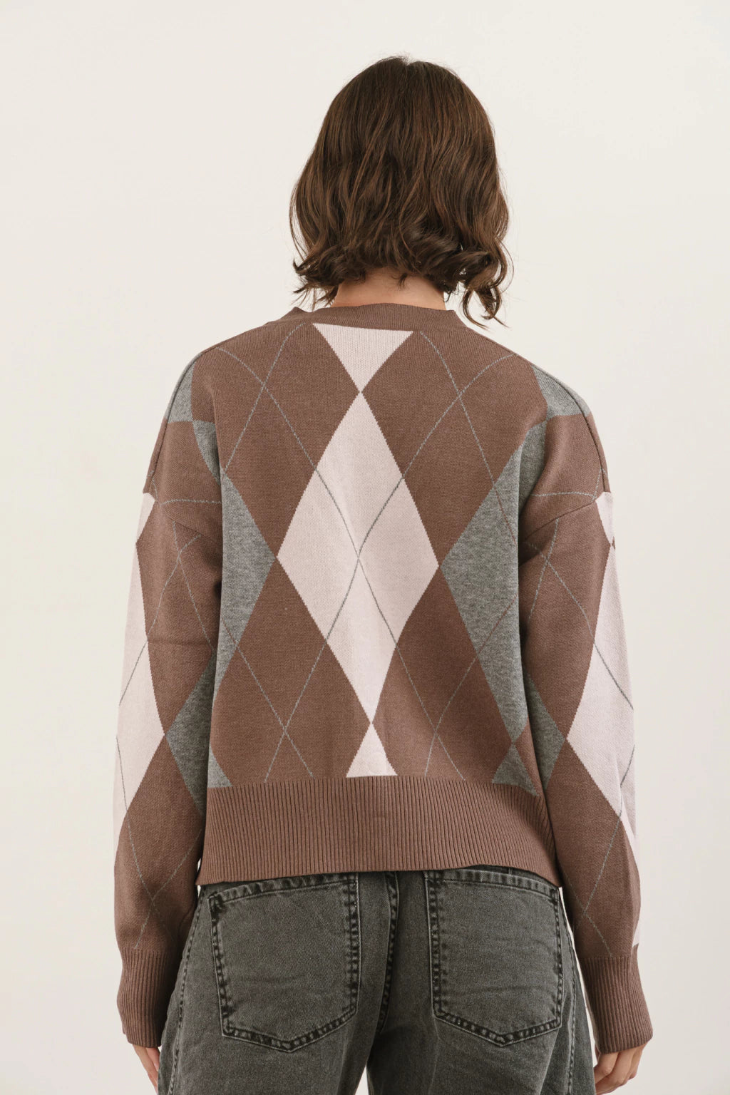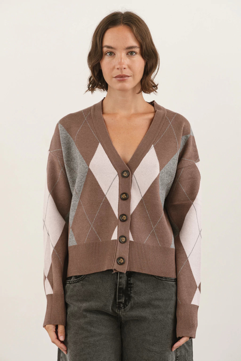 El chaleco de rombos grandes aporta presencia y estilo con un diseño atemporal que nunca pasa de moda.