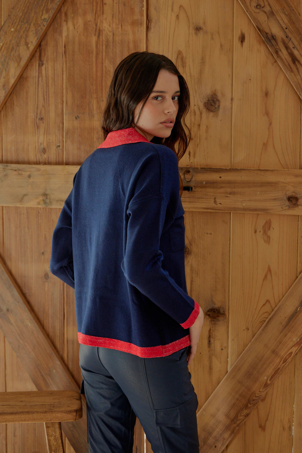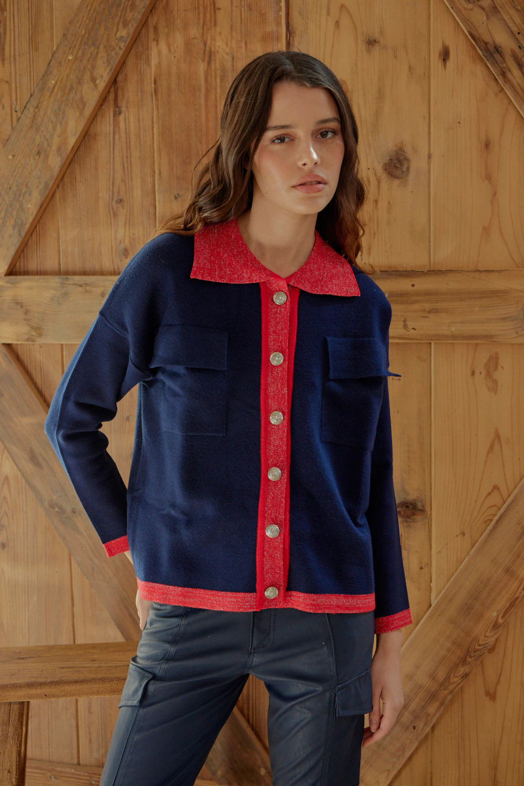 Cardigan de bremer doble , con detalles a contratono y bolsillos .