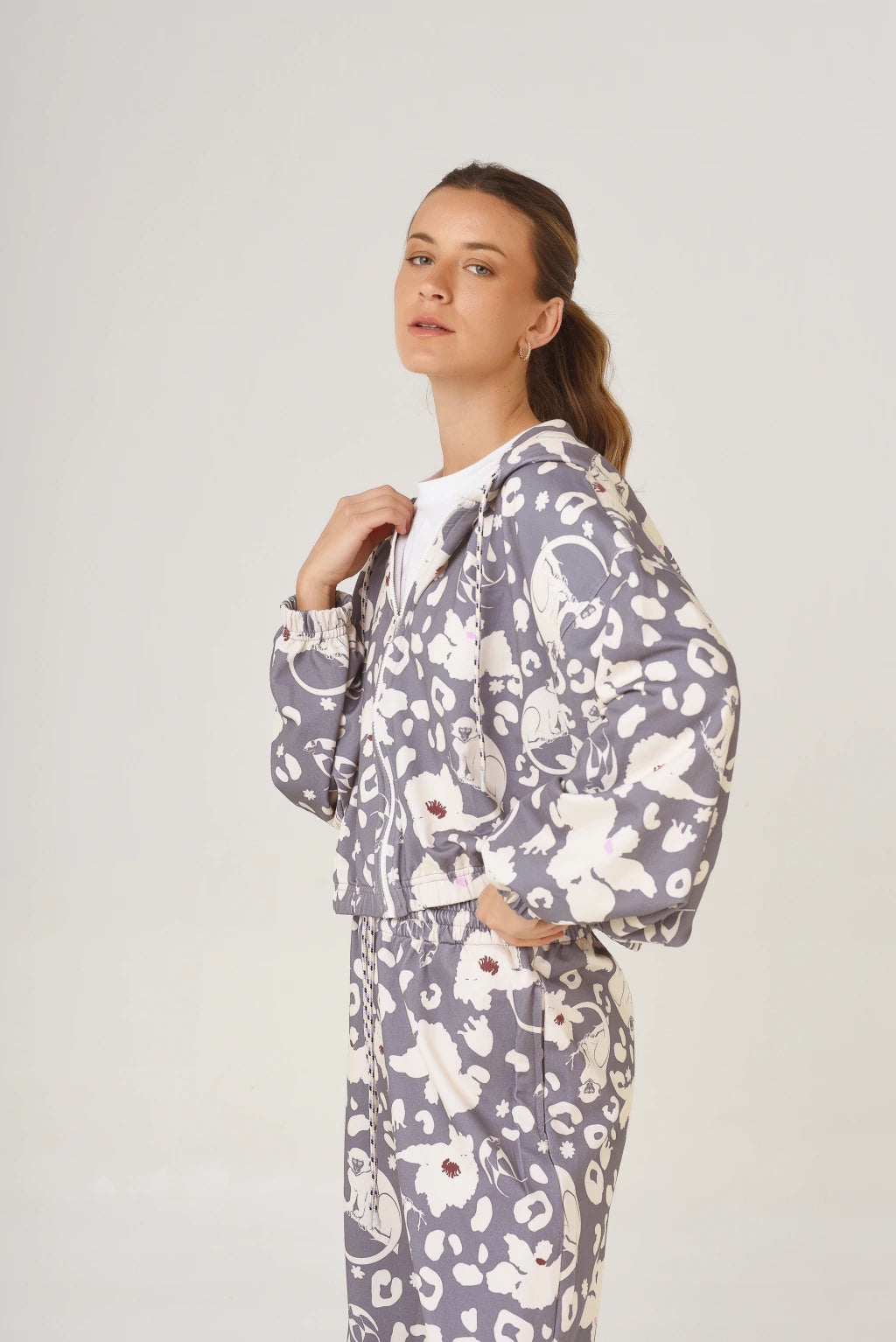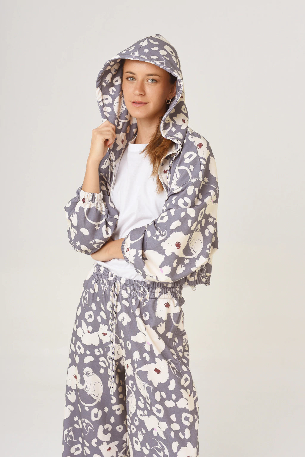 La campera Tijuana está confeccionada en rústico de algodón. El modelo es amplio con hombros caídos y el largo es hasta la primera cadera. Tiene capucha con cordón para ajustar, elástico en puños y en la parte inferior.