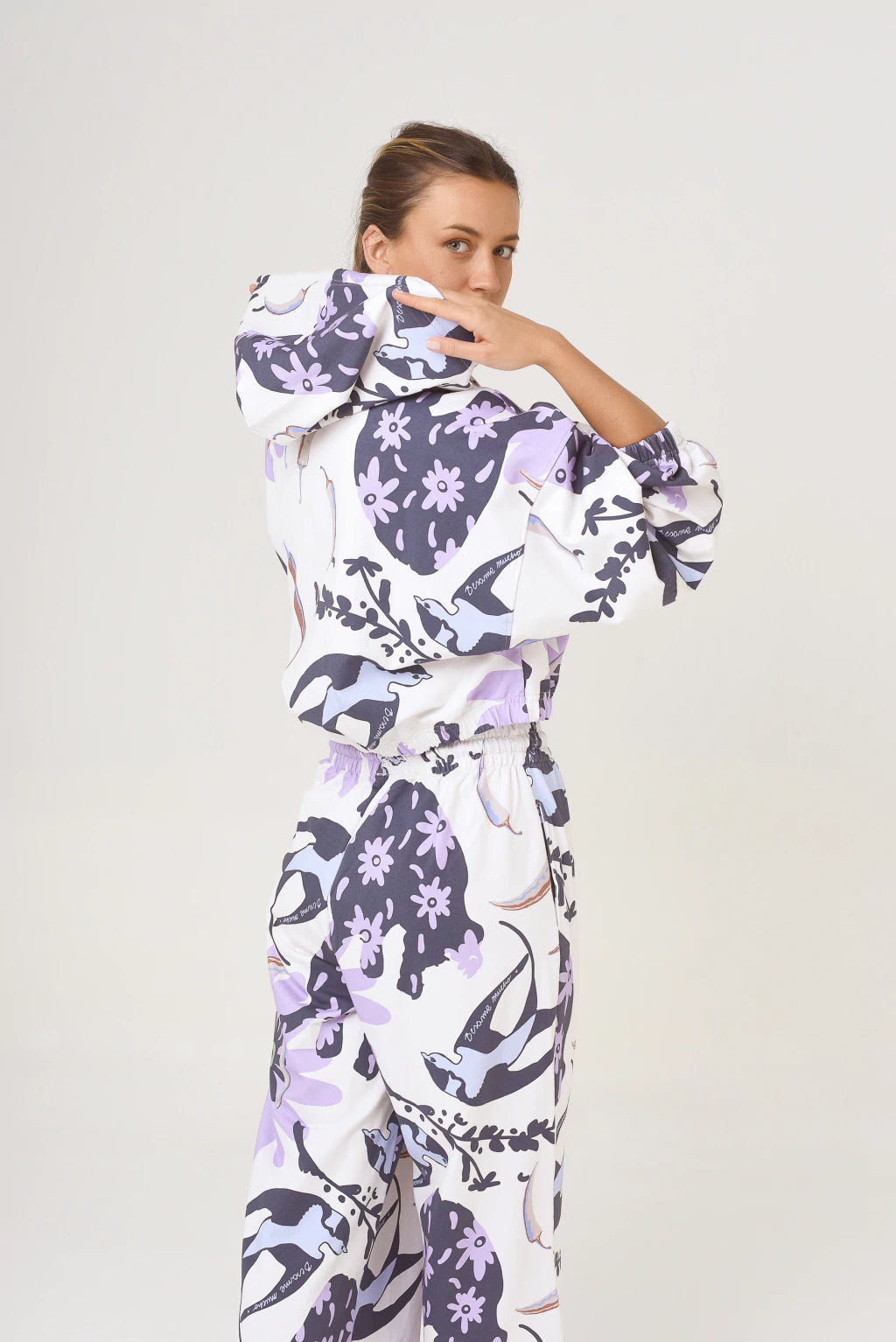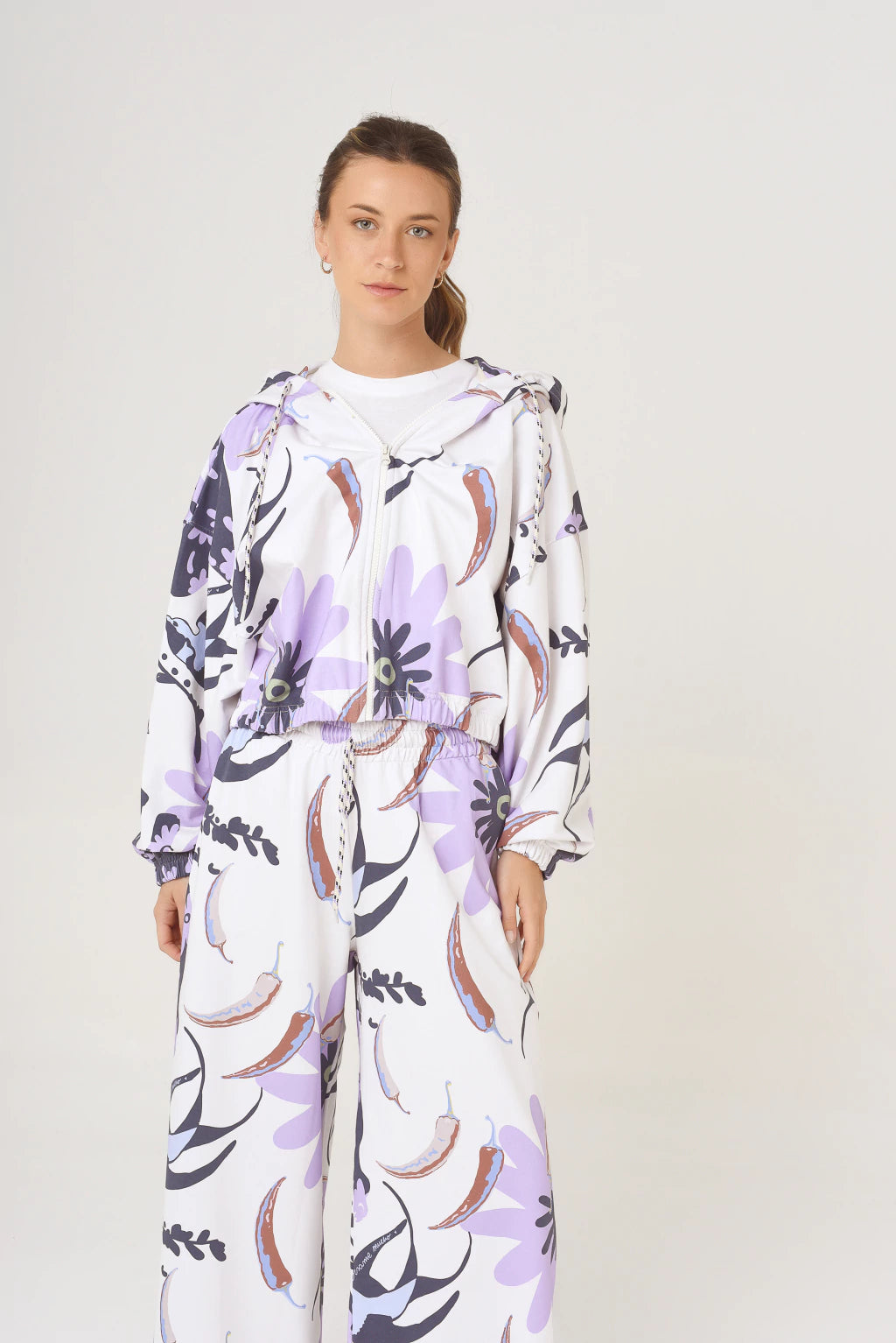 La campera Tijuana está confeccionada en rústico de algodón. El modelo es amplio con hombros caídos y el largo es hasta la primera cadera. Tiene capucha con cordón para ajustar, elástico en puños y en la parte inferior.