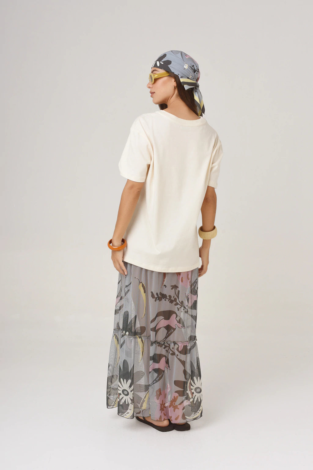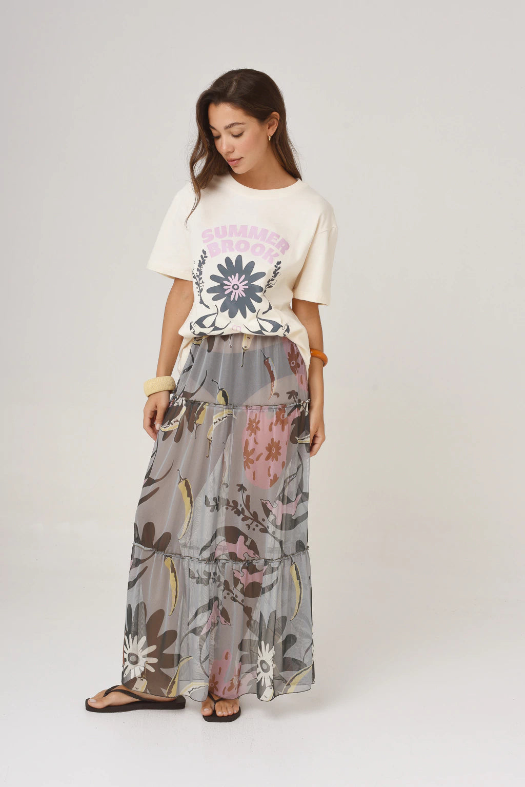 La falda Carmen está confeccionada en microtul, posee volados y elástico en la cintura. El largo es por los tobillos, una prenda clave para este verano