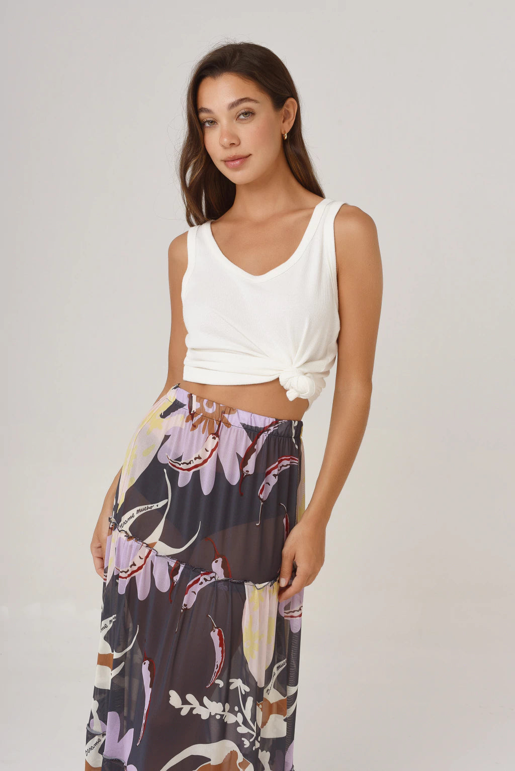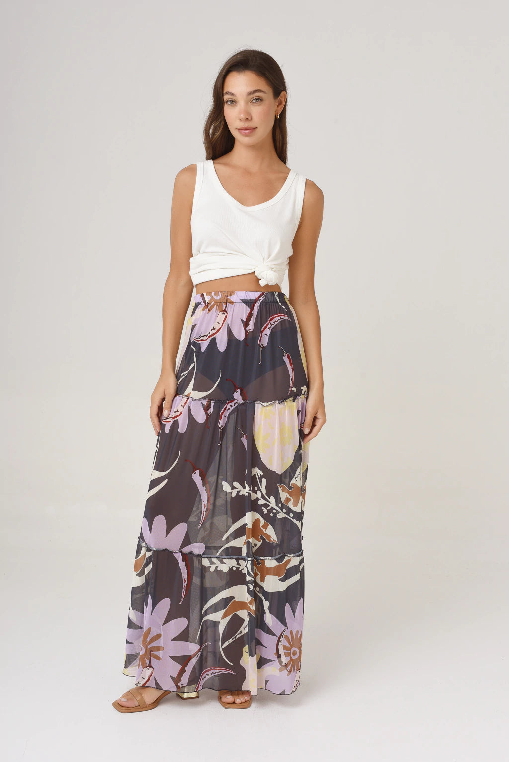 La falda Carmen está confeccionada en microtul, posee volados y elástico en la cintura. El largo es por los tobillos, una prenda clave para este verano
