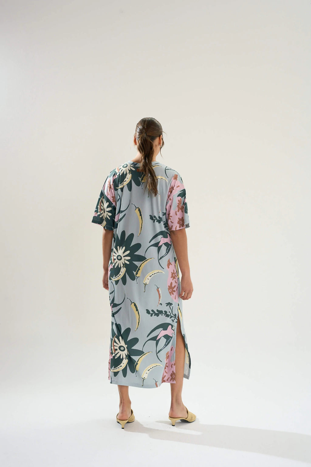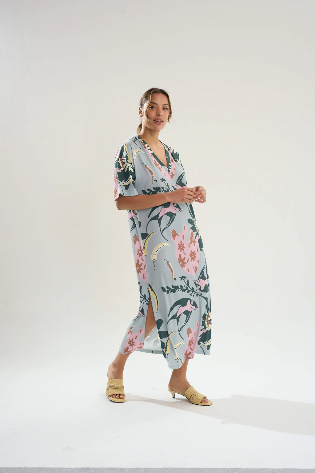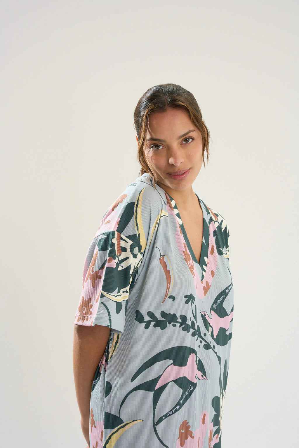 Confeccionado en morley, tiene cuello V y es súper cómodo. Es corte recto, el largo es hasta los tobillos y tiene dos pequeños tajos en cada lateral inferior.