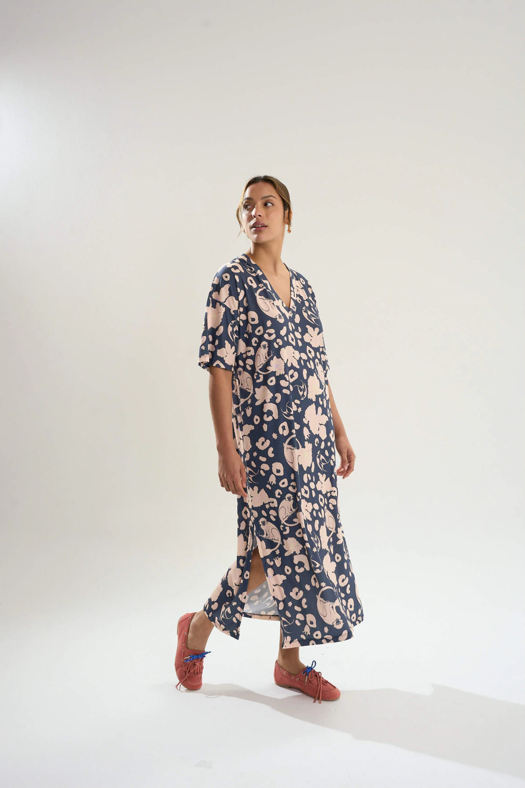 Confeccionado en morley, tiene cuello V y es súper cómodo. Es corte recto, el largo es hasta los tobillos y tiene dos pequeños tajos en cada lateral inferior.